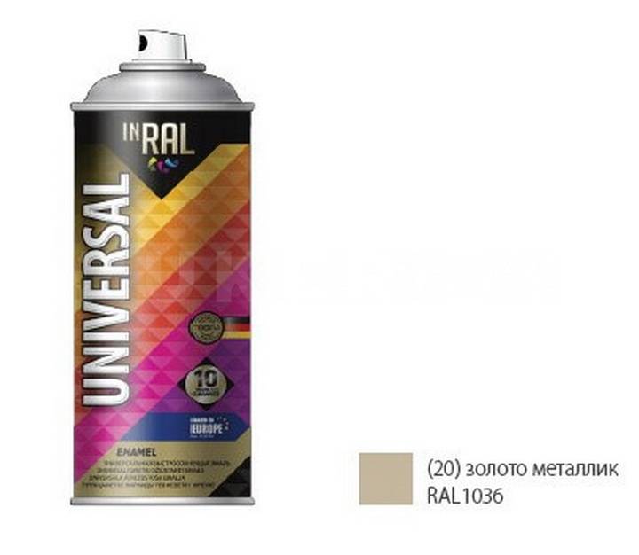 Бренд INRAL Применение металл. дерво. пластмасса. штукатурка. гипс Производитель Польша Объем, мл 400 Время высыхания, мин 20 Цвет золотой металлик Тип покрытия глянцевое -