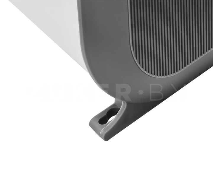 Передняя панель без перфорации блокирует распространение шума от вентиляционных колес направляя его в потолок а не в проходящих людей, что делает завесу значительно тише аналогов в классическом корпусе.