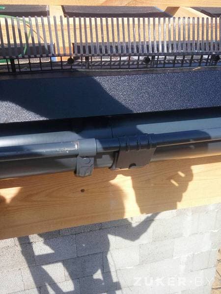 Внимание! Важным моментом, для правильного сбора воды и отсутствия перелива, не забывайте задать угол уклона желоба в сторону ближайшей воронки (уклон в 4 см на каждые 10 см).
